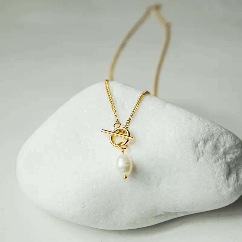 Ένα κολιέ που αποπνέει απλότητα με διακριτική θηλυκή πολυτέλεια. Ο συνδυασμός της φυσικής πέρλας με το minimal επιχρυσωμένο κούμπωμα το κάνει να ξεχωρίζει χωρίς να φωνάζει. Ιδανικό για layering, αλλά και από μόνο του, προσθέτει μία chic λεπτομέρεια στην καθημερινότητά σου — από το πρωινό σου outfit μέχρι ένα κομψό βραδινό look.